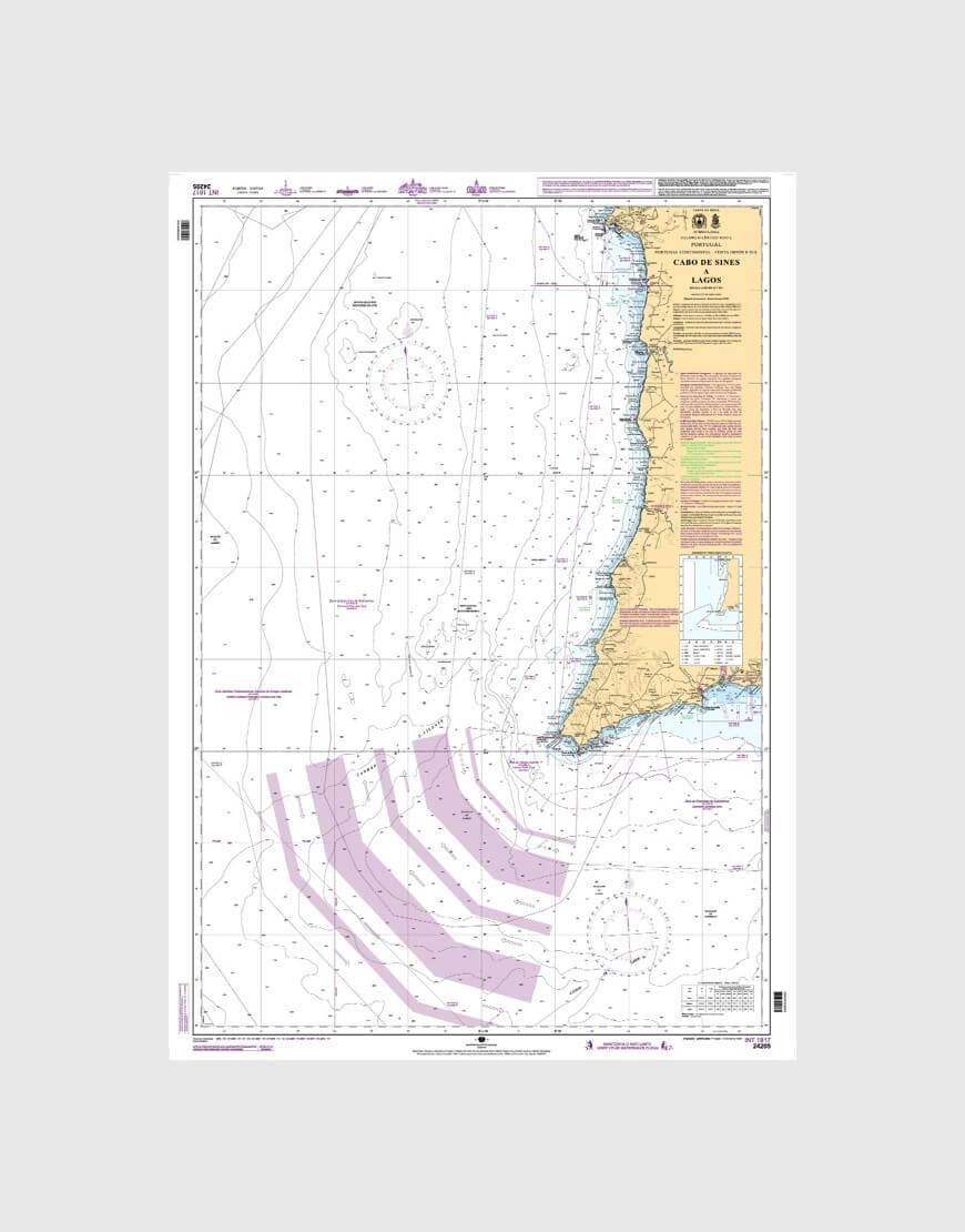 Carta náutica da série Costeira que se destina à navegação ao longo da costa entre o Cabo de Sines e Lagos