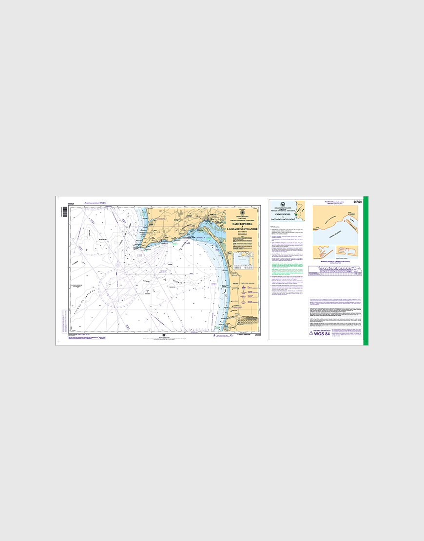 Carta náutica da série Recreio que se destina a apoiar a navegação de recreio ao longo da costa entre o Cabo Espichel e a Lagoa de Santo André.