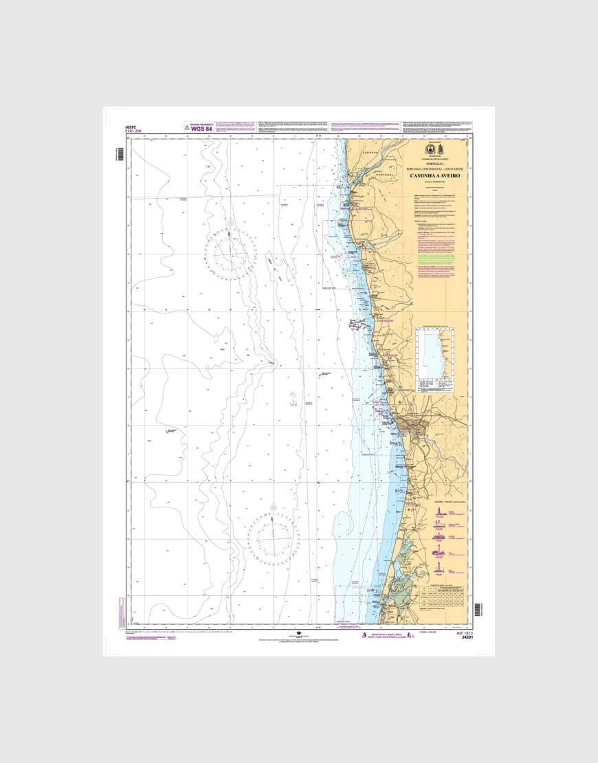 Carta náutica da série Costeira que se destina à navegação ao longo da costa entre o porto de Caminha e o porto de Aveiro