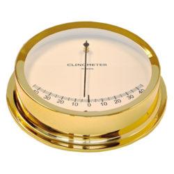 Clinómetro aneroide com letras pretas em um mostrador branco com ponteiro preto em latão