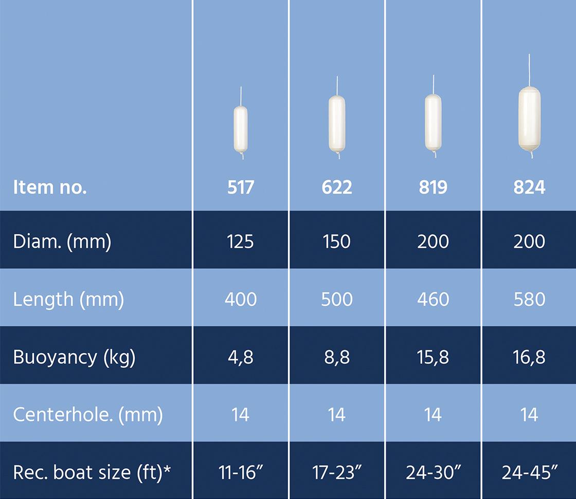 Encontram-se disponíveis em diversos tamanhos para barcos de 11 a 30 pés.