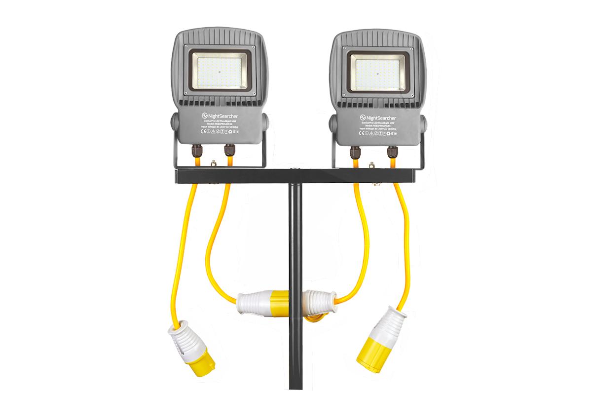 The NightSearcher EcoStar Pro 110V Linkable flood/sitelights are the ideal lighting solution for the industrial and construction markets as well as outdoor events. The EcoStar Pro Linkable floodlights are fitted with CEE 110V plug and socket allowing multiple lights to be linked together, and the LED energy efficiency allows very long cable runs.