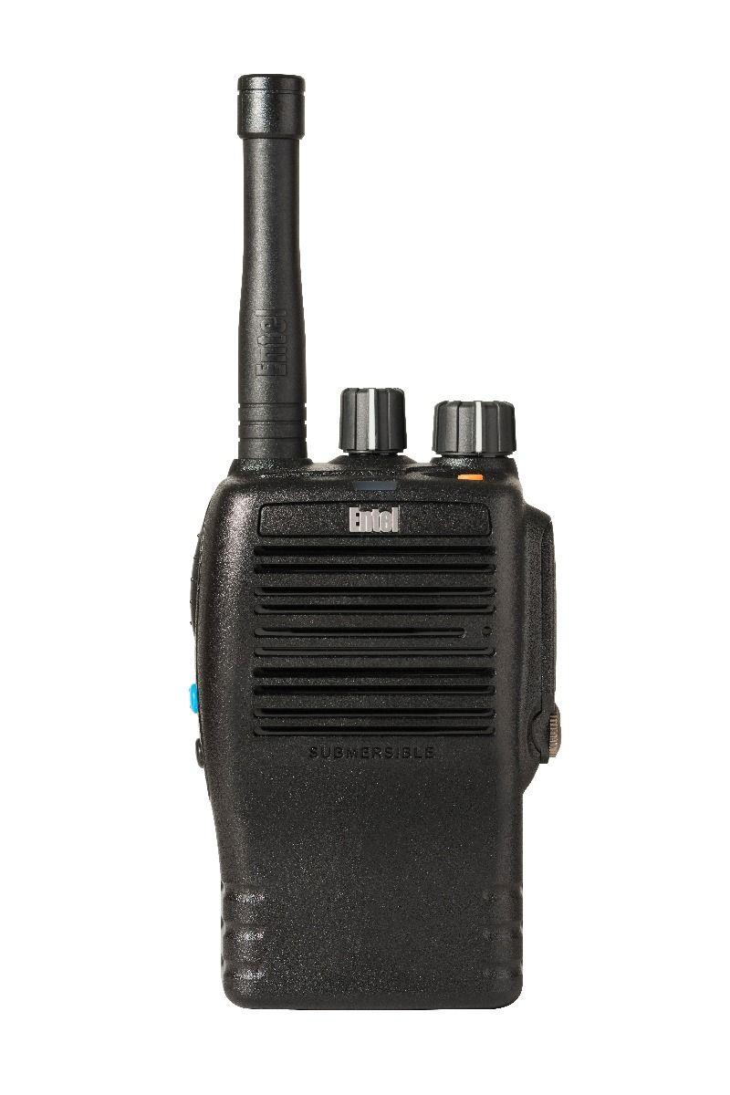 UHF IP68 programável 16 canais 1 zona (400 a 470 MHz). Inclui: bateria recarregável de 2000mAh, antena, carregador AC, base de carregamento e fivela para cinto.