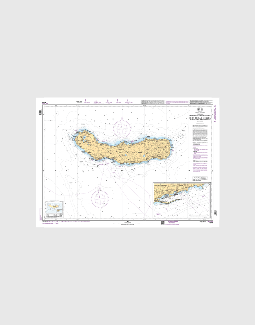 Carta náutica da série Aproximação com Planos dos Portos que se destina à aproximação e navegação no porto de Ponta Delgada.