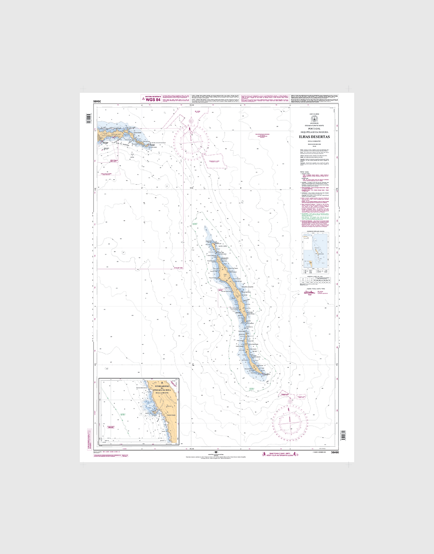 Carta náutica da série Aproximação com Planos dos Portos que se destina à aproximação e navegação na Enseada da Doca e nas Ilhas Desertas.