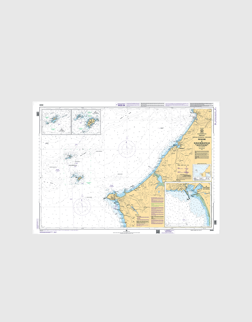 Carta náutica da série Aproximação com Planos dos Portos que se destina à aproximação e navegação no porto de Peniche e nas Ilhas Berlengas.