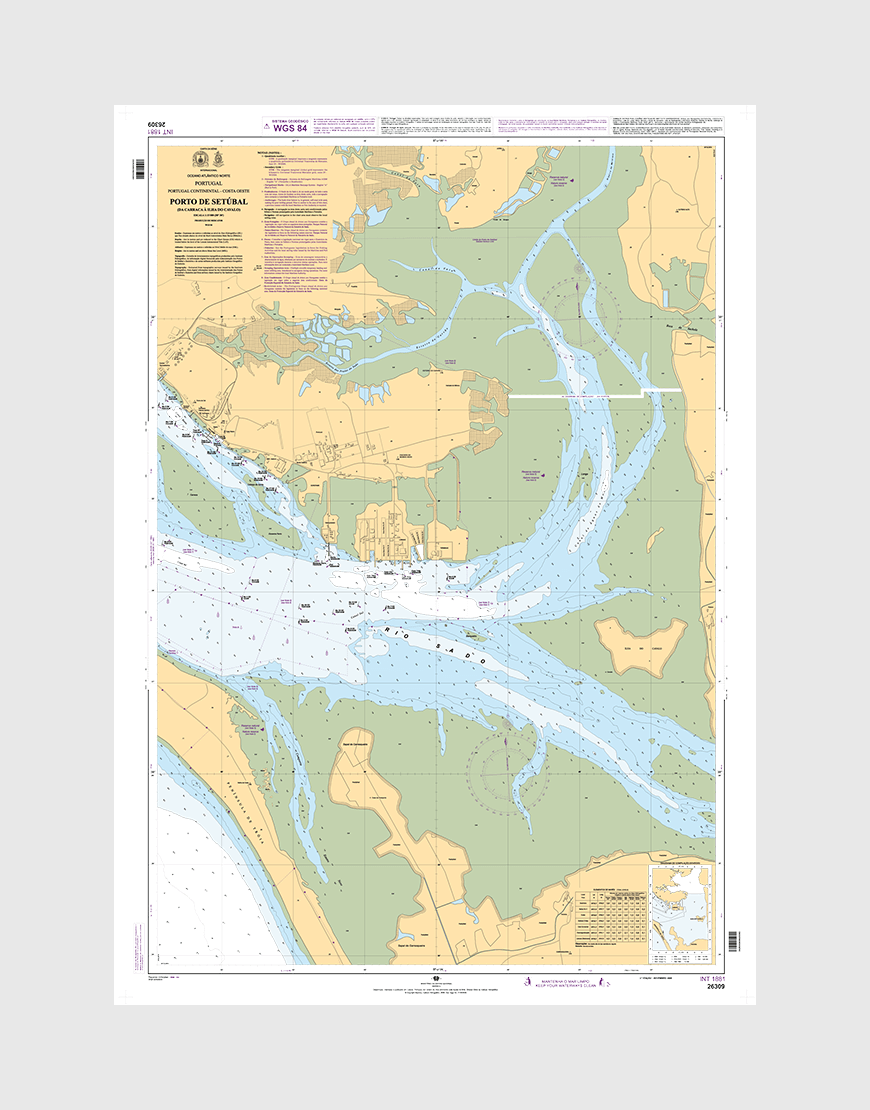 Carta náutica da série Portuária que se destina à navegação no porto de Setúbal entre a Carraca e a Ilha do Cavalo.