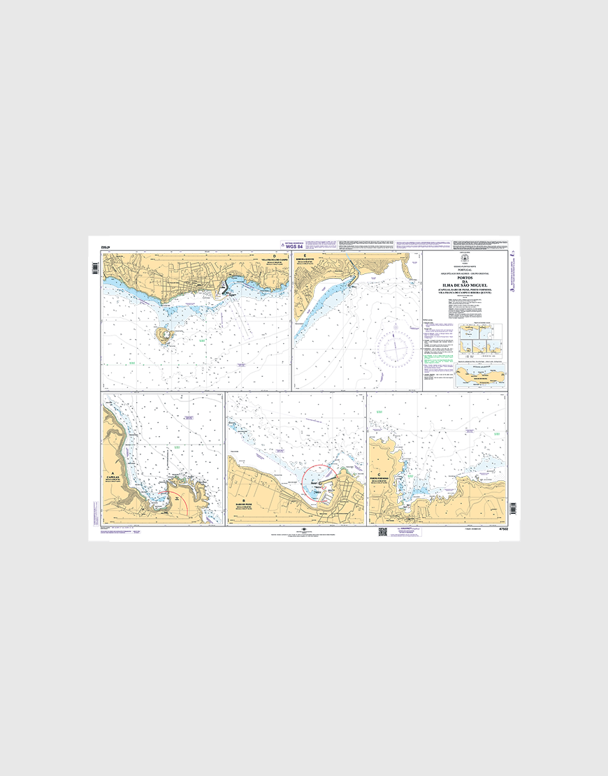 Carta náutica da série Planos que se destina à navegação nos portos de Capelas, Rabo de Peixe, Porto Formoso, Vila Franca do Campo e Ribeira Quente.